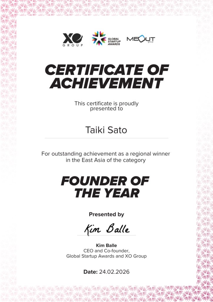 このたび、TopoLogic・CEO佐藤がGlobal Startup Awards(GSA)において、「Founder of the Year」部門東アジア地域優勝を果たしました。