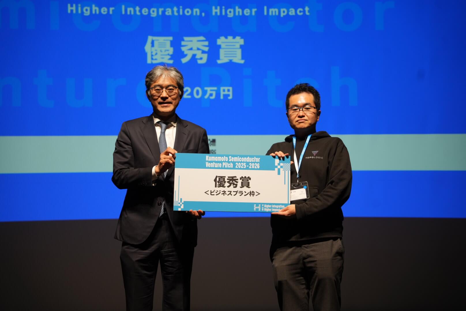 2月26日に熊本市で開催された「熊本半導体ベンチャーピッチ」にて、TopoLogicがビジネスプラン枠で優秀賞を受賞し、賞金20万円を獲得しました。